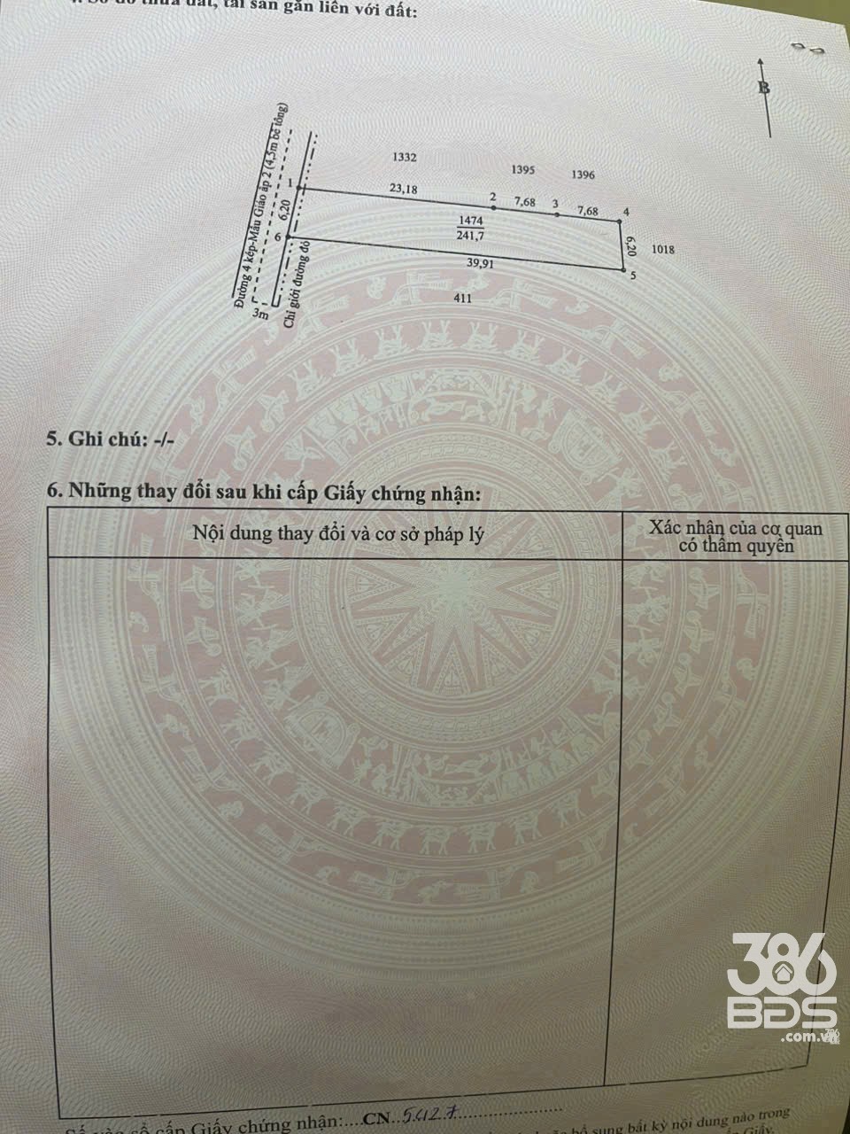 - DT : 6,2 X 39 =241,7m² thổ cư