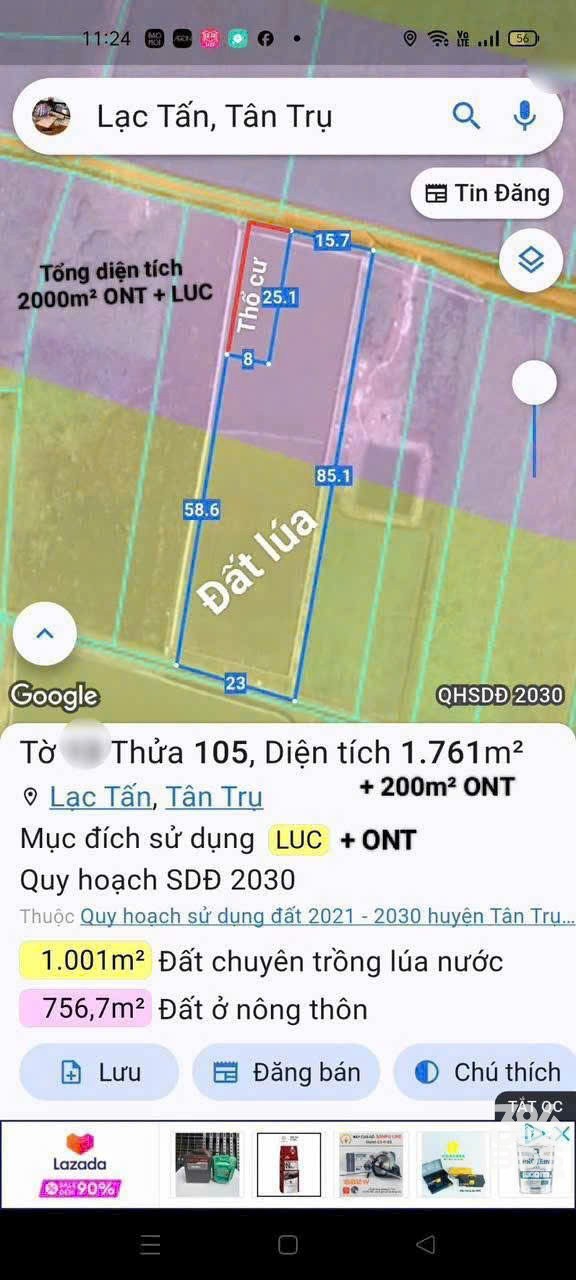 🏠Đất tại ấp 1xã Lạc Tấn huyện tân trụ long an